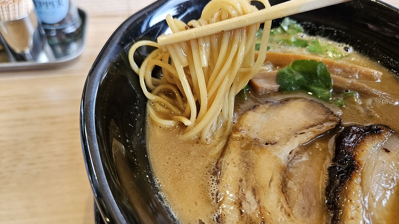 この麺、いいですね!パツっと歯切れ良く、啜り感も素晴らしい。スープと相性抜群です。スープも濃厚な動物系と魚介系のスープで、とにかく熱々で提供されるのが素晴らしい。少し甘めのスープでコク深く、美味しいスープです。