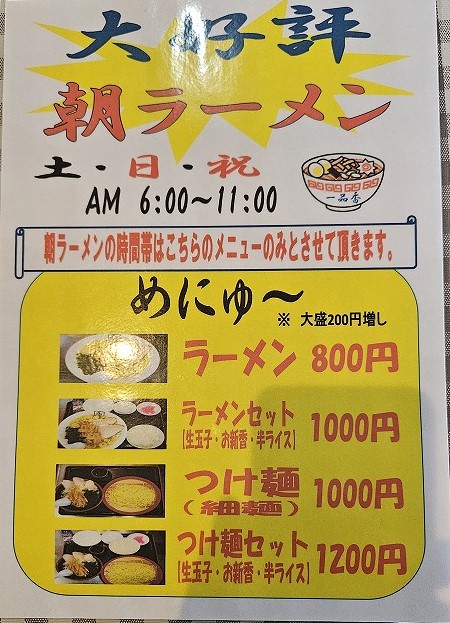 岩室の一品香でお盆休み初日の朝ラー! 投稿者 しばっち投稿日:2025年8月11日2025年8月10日 新潟市西蒲区、一品香岩室店で、朝ラーしてきました! 朝メニュー ラーメン800円 朝から嬉しくなる熱々ラーメン!つるしこの麺、あっさりですが旨味たっぷり動物系のスープ、ホロホロと柔らかいチャーシュー。全く文句なしのラーメンです。ワカメやメンマもタップリ入っていて豪華版が800円は破格値ですね! 一品香 関連ランキング:ラーメン | 岩室駅