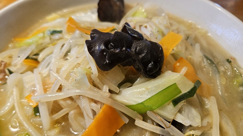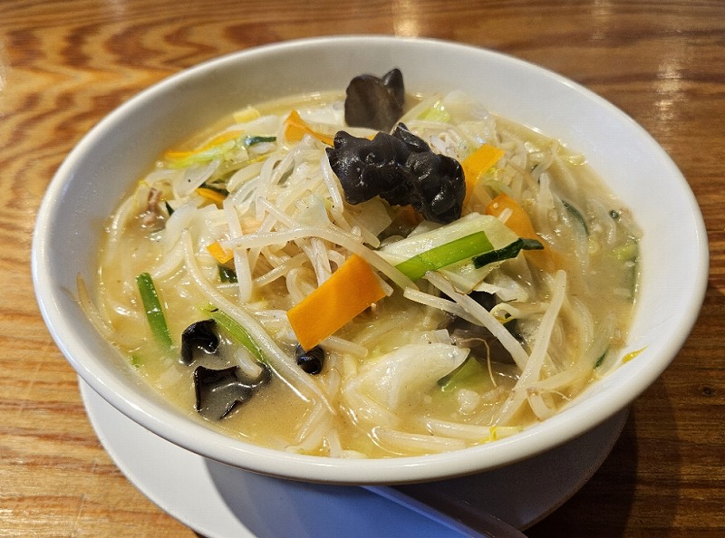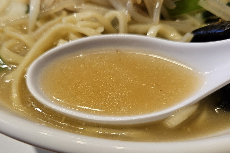 スープは様々な旨味が溶け込んでます。豚、鶏は勿論、貝の旨味もしっかりと感じます。これはスープを飲む手がとまらないです。野菜もタップリで、スープにその旨味が溶け込んでいます。