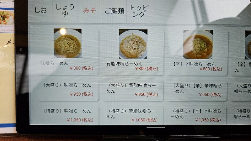 背脂味噌らーめん800円
