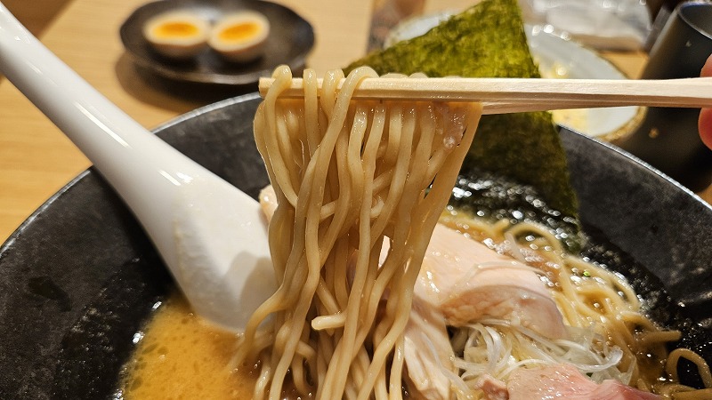 麺はコシ強く、しかし滑らかさも持ち合わせた優れもの。食べていてストレスがなにもない美味しい麺ですね。