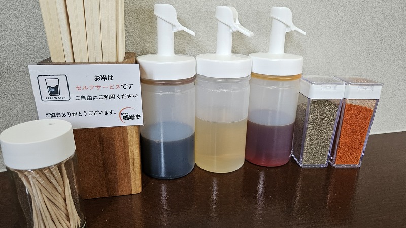 卓上には調味料が揃っています。