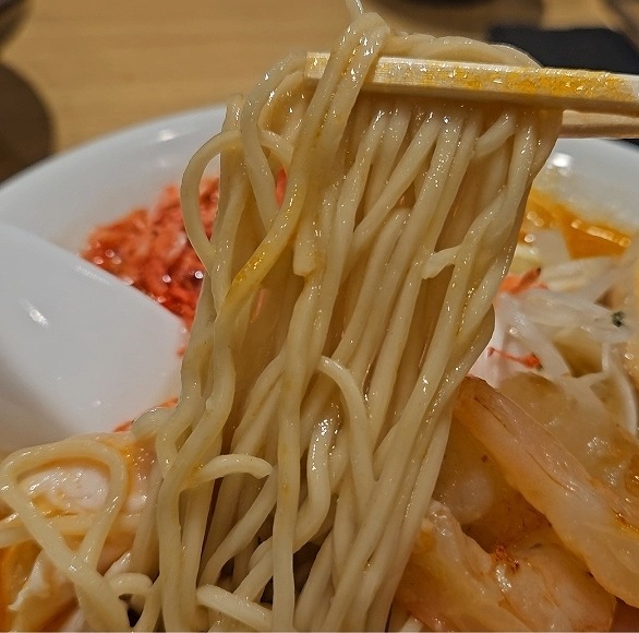 スープは超濃厚な海老全開スープ!海老の香りが口いっぱいに広がります。