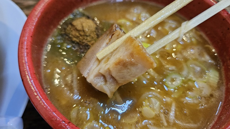 チャーシューはつけ汁の中にゴロゴロ。美味しいです。