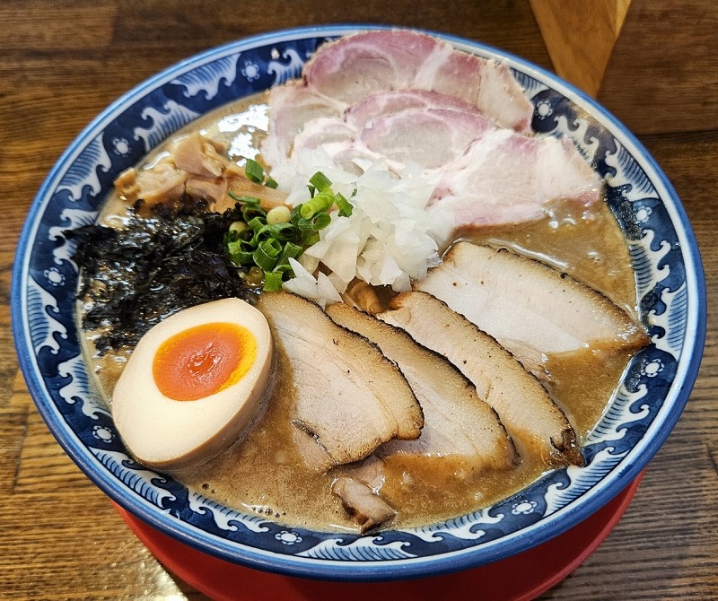 スープは濁味噌の醤油バージョン。このスープヤバい!飲む手が止まらない。魚介が濃厚でありながらも最後まで美味しく頂けます。チャーシュー2種もこのお店の名物。どちらも美味しかったですね。