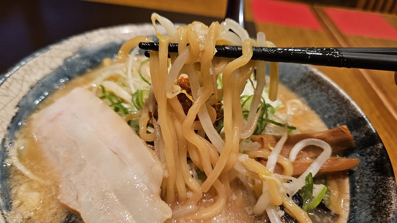 柿渋ポリフェノール入りの麺はこのスープに非常に合っています。