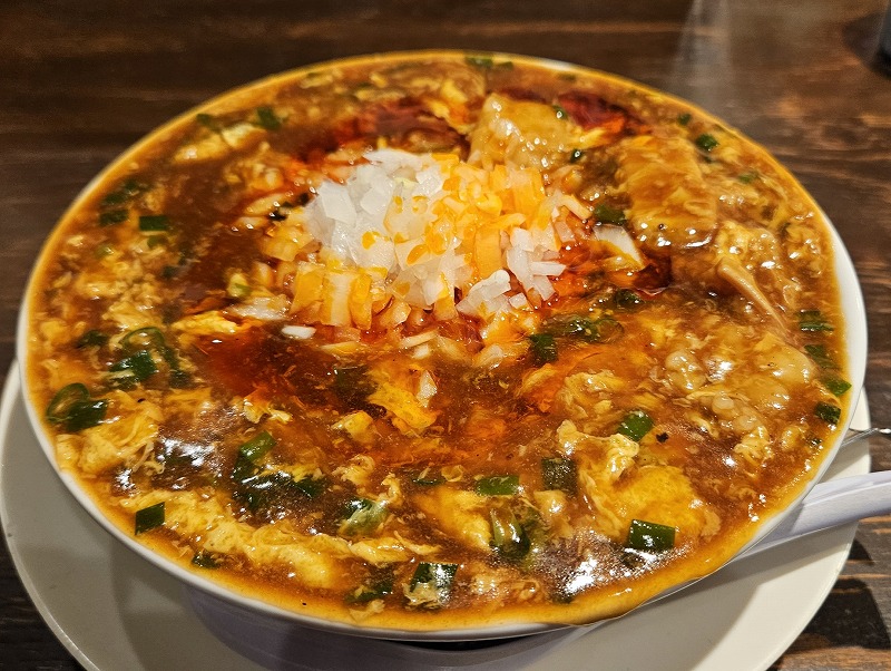 値段高めかな?と思いきや、牛ホルモンがタップリ入っています。高知発祥のジャン麺はここ最近あちこちで流行っていますね。本当は生卵を入れるのですが、個人的にはあまり入れたくなかったのでパズ。とろみのついた餡の旨さが光ります。ふわふわした溶き卵もGOOD!これはご飯ありきのラーメンですね。