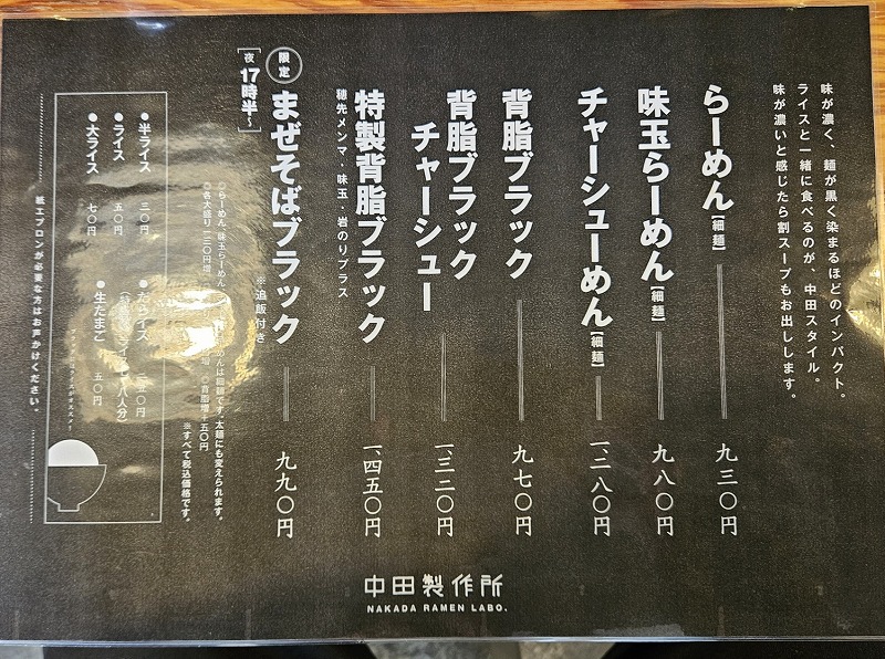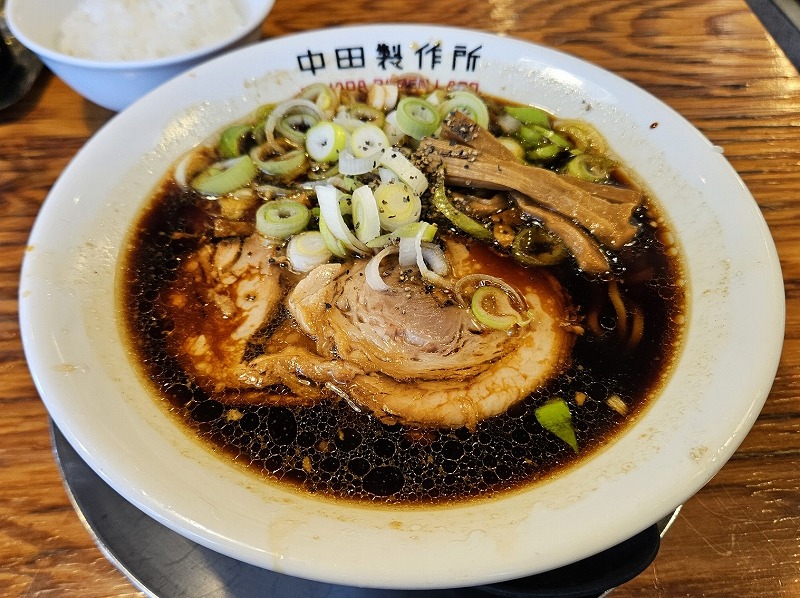 中田製作所「五泉市」でブラックとライスを食べてきました! 投稿者 しばっち投稿日:2026年1月29日2026年1月28日 五泉市の中田製作所に行ってきました。 メニュー らーめん930円 久々に真っ向からBLACKを頂きます。しかも濃いめ!このしょっぱいのがやめられないんですよね。スープ色に染まった麺もまたいい!豚バラロールチャーシューもとろける。そしてネギがよく合う! 半ライス30円を注文しましたが、やっぱり大ライス70円にすればよかったですね。 中田製作所 関連ランキング:ラーメン | 北五泉駅