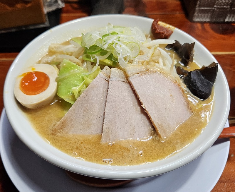 ブっとい麺を、濃厚な味噌スープで喰らう。やっぱりこれが好きです。このお店は麺が美味しいのはわかりきったことですが、スープの凄さを再確認。動物系の濃厚な出汁の中に、これまたしっかりしたコクを感じます。そのバランスが合っていることで重さはみじんも感じません。チャーシューもロースでしっとりと仕上がっています。野菜はタップリでこのスープのお陰で美味しく頂けます。