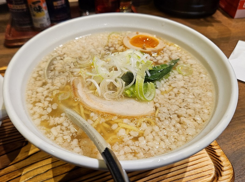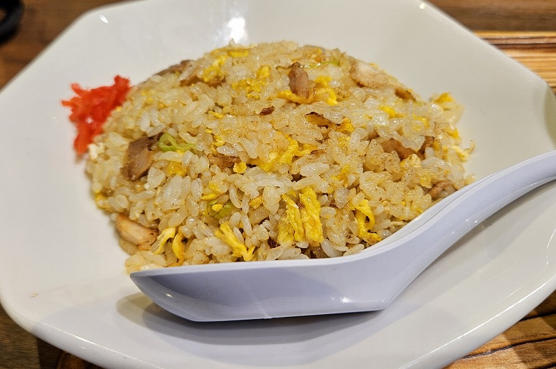 二つで1400円。ちょっとお高い印象ですね。ラーメンは見た目よりしっかりした味で悪くないですね。粒粒背脂の食感がいいです。炒飯は割と家庭炒飯。こういう感じのものはスープに浸して食べるのが自分流。