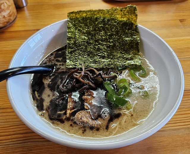 博多拉麺KAZU「長岡市」で、美味しい博多風豚骨を頂きました! 投稿者 しばっち投稿日:2026年3月18日2026年3月15日 長岡市の博多拉麺 KAZUに行ってきました。 メニュー 卓上には様々なアイテムが揃っていますね。 黒とんこつ900円 これですよね~!新潟で食べられる博多系豚骨での最高峰!程よく塩味の刺さるスープ!豚骨がそれを円やかにしてくれます。キクラゲの食感も良い!麺は極細麺。今回はバリカタ。ボキボキ感がたまらない。チャーシューも2枚入ってます! 博多拉麺 KAZU 関連ランキング:ラーメン | 長岡駅、宮内駅、北長岡駅