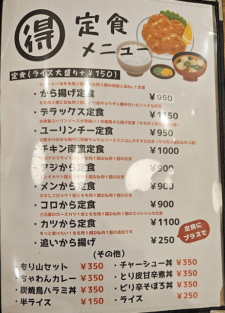 やっぱりせっかくの豚骨スープにカレーは邪道だったか。食べ進むにつれて通常のプレーンな豚骨が恋しくなる。ただ幸運だったのはもり山セットを注文したこと。カレーと唐揚げの組み合わせが抜群に良いです。ご飯がすすむ!もり山の唐揚げは胸肉を使用し、さっぱりと仕上がっているため、カレーと合わさることによってより食欲が増す仕組みになっています。このセットはお勧めです。