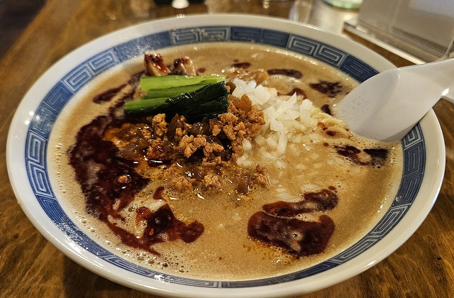 なんせ、作りはじめた時点でかなり胡麻の香ばしい香り。着丼した担々麺は、色合いが素晴らしく、食べる前から食欲が爆発する。食べてみると山椒の香りと胡麻のハーモニーが口一杯に広がる。まさに完璧!