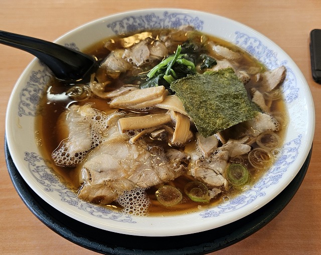 見た目よりチャーシュータップリです。ご飯が欲しいところですがありません(涙)こういうチャーシューが1番好きかも。しっかり味染み。麺はコシ強く、しっかりした麺です。スープは程よく生姜が効いていて、コクの強いスープとよく合っています。フードコートで頂ける最高のラーメンですね。